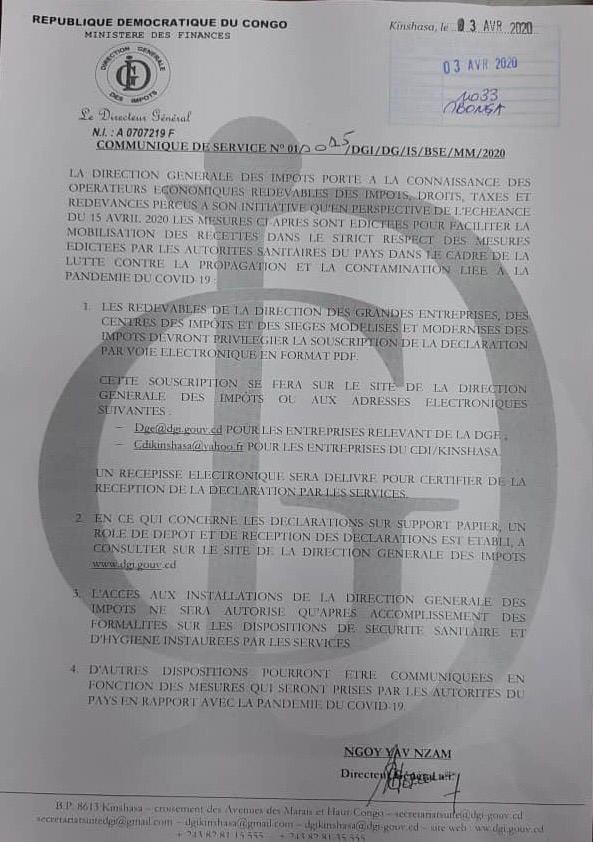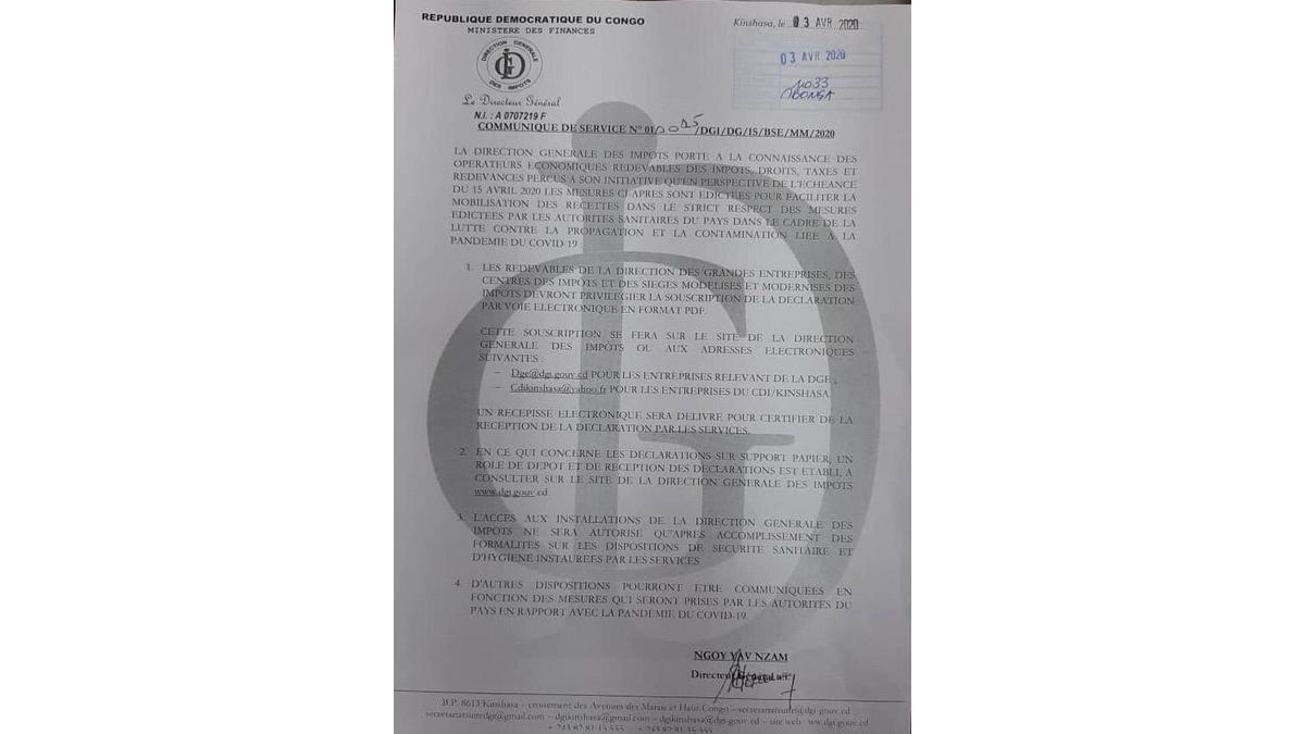 Communiqué DGI - 03-04-20