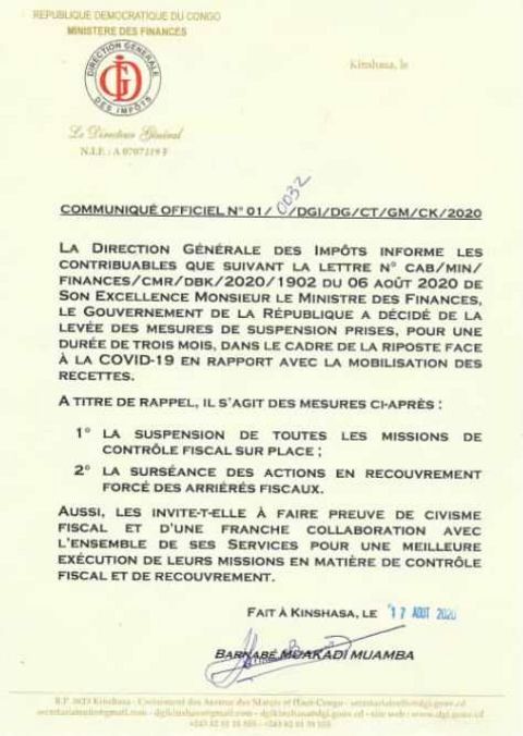 Communiqué officiel de la DGI
