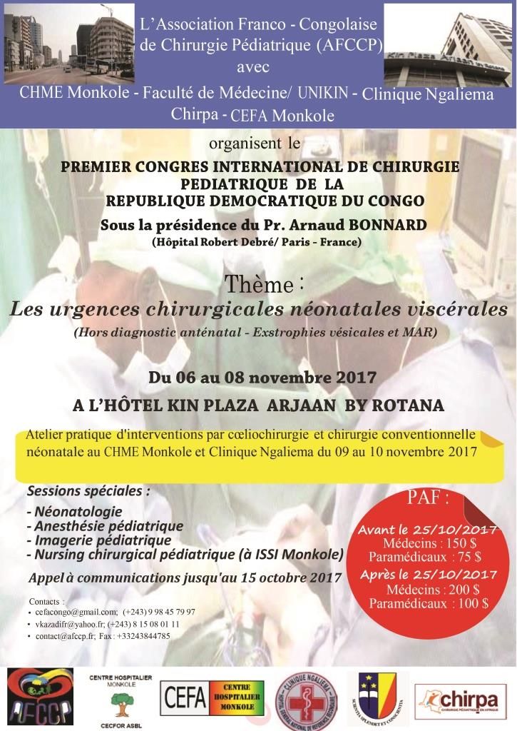 Du 6 au 8 novembre : Premier congrès international de chirurgie pédiatrique de la RDC
