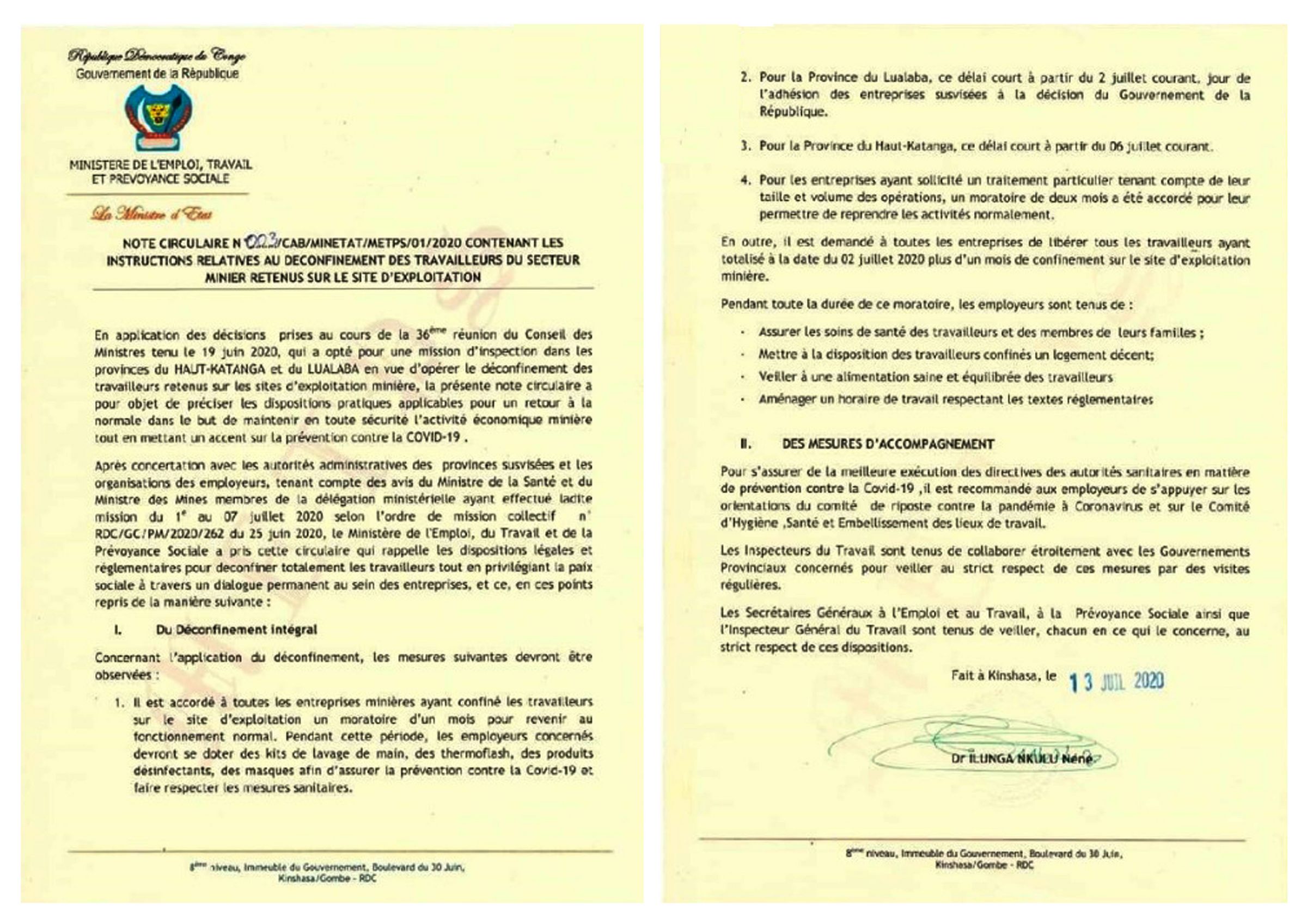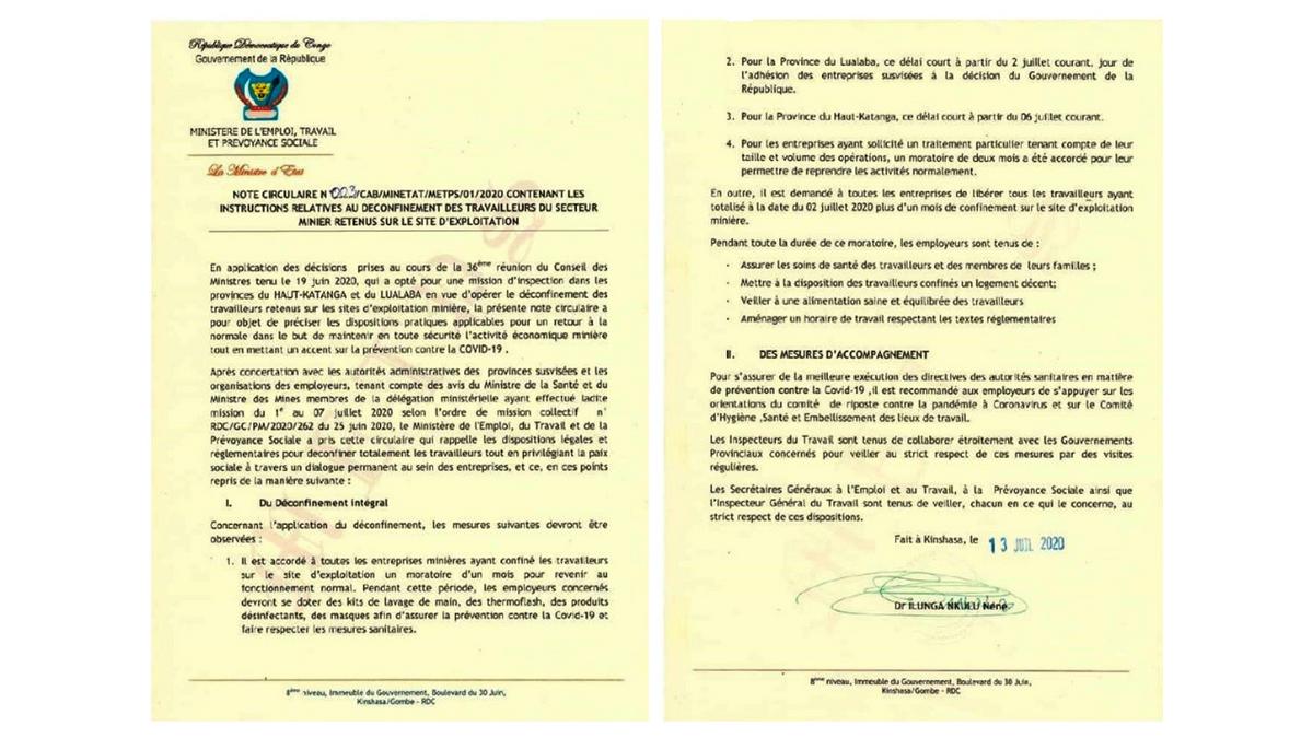 Les provinces du Haut-Katanga et Lualaba : l'application du déconfinement et les mesures qui devront être observées