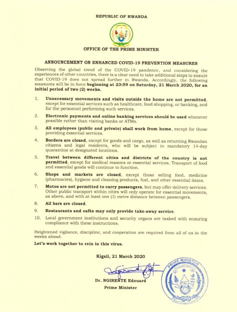 Mesures relatives au COVI-19 au Rwanda