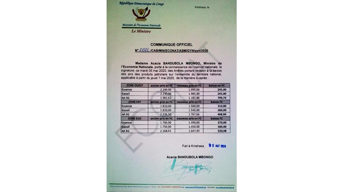 Détails de la baisse des prix pétroliers sur l'ensemble de la RDC 05-05-20
