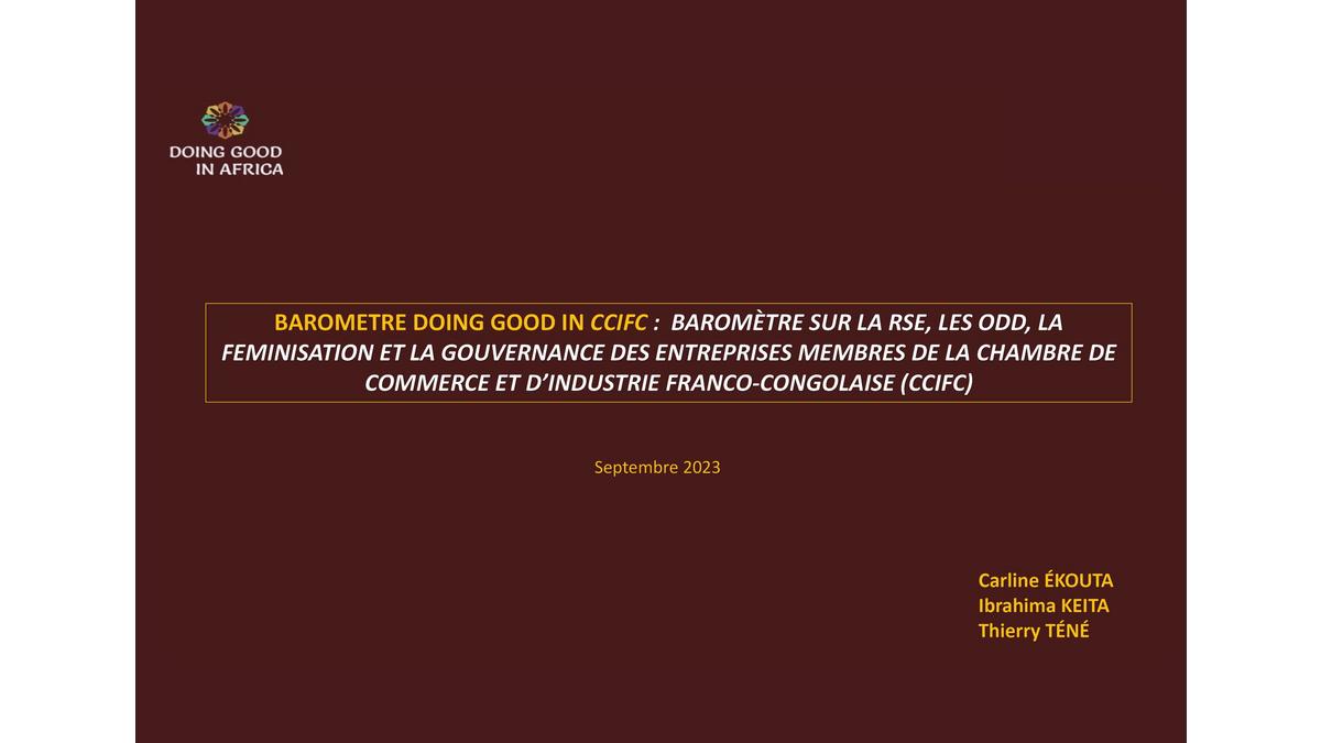 Barometre doing good in ccifc : baromètre sur la rse, les odd, la feminisation et la gouvernance des entreprises membres de la chambre de Commerce et d’industrie franco-congolaise (ccifc)
