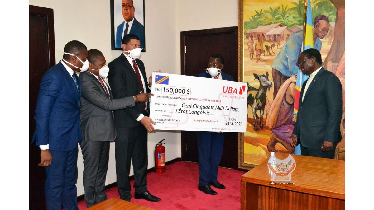 United Bank of Africa, UBA a offert un don de 150.000 dollars américains pour contribuer aux efforts du Gouvernement Congolais dans la lutte contre la propagation du Coronavirus. Une délégation conduite par Bernard Mavambu Zoya, Président du Conseil d’Administration et Patrick Kabisi, Directeur Général de cette banque commerciale était reçue ce mardi 31 mars 2020 à la primature, par le Premier Ministre Ilunga Ilunkamba.