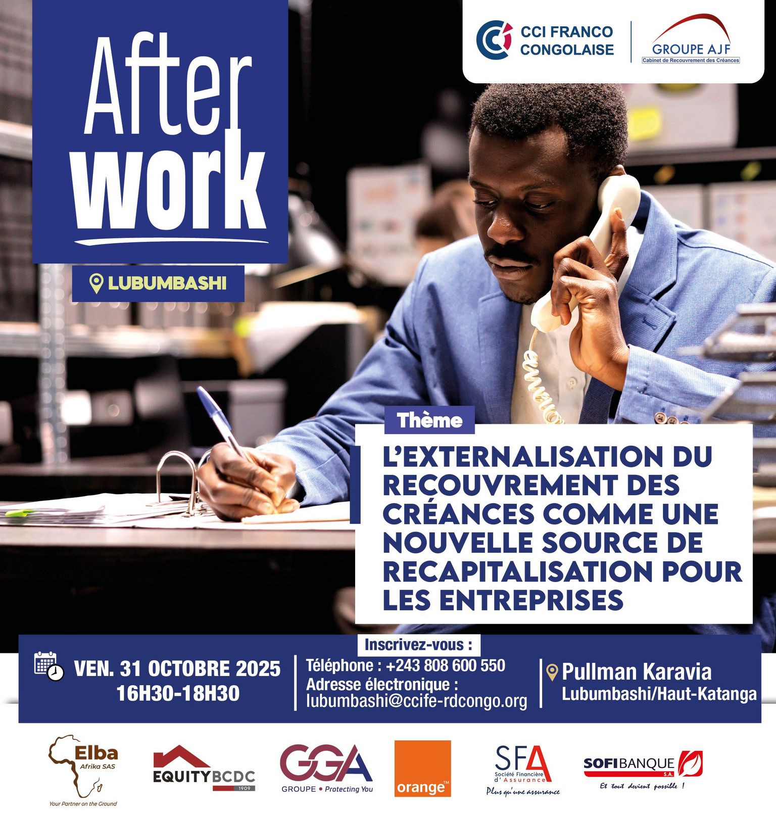 La Chambre de Commerce et d’Industrie Franco-Congolaise, en partenariat avec le Cabinet de recouvrement AJF, organise un afterwork sur : “L’externalisation du recouvrement des créances comme une nouvelle source de recapitalisation pour les entreprises : De la phase amiable à la phase contentieuse.”