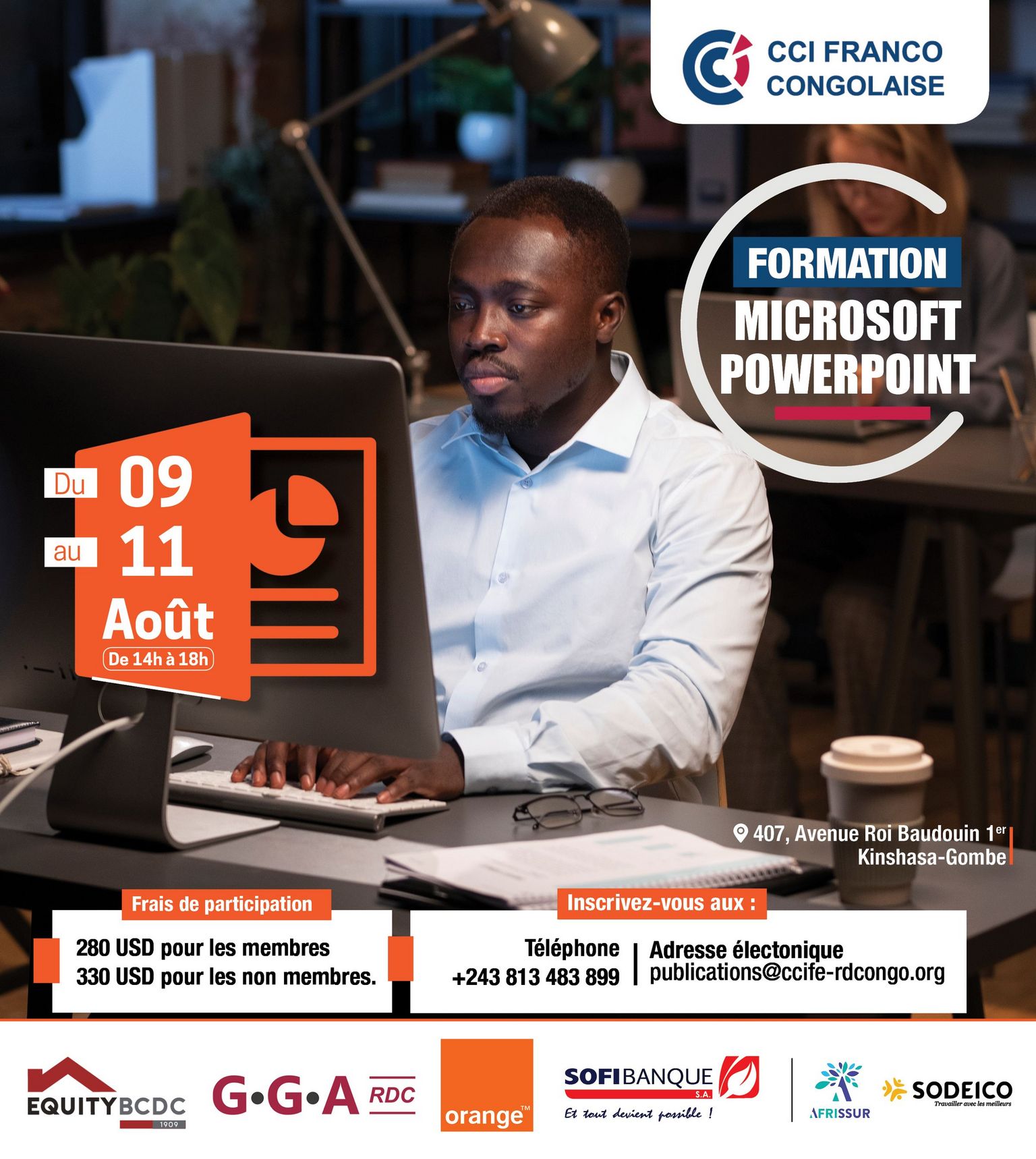 La Chambre de Commerce et d'Industrie Franco-Congolaise organise une formation sur MicrosoftPowerpoint du Mercredi 09 au Vendredi 11 Août 2023.