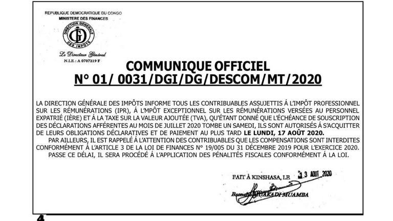 Communiqué officiel du Ministère de l’emploi, travail et prévoyance sociale 24-07-20