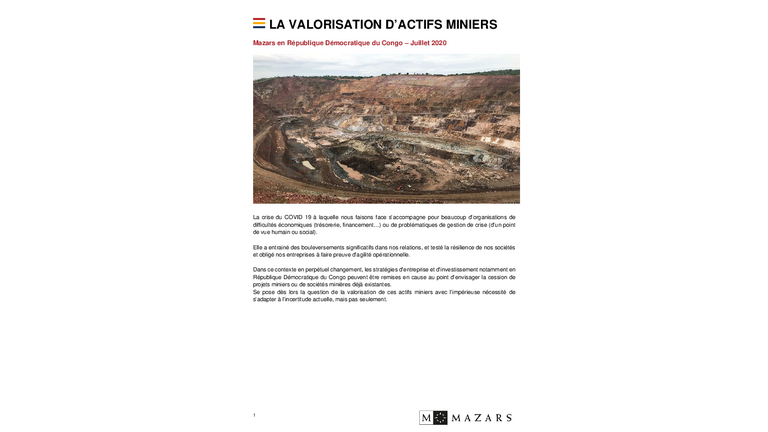 Mazars : La valorisation d'actifs miniers - 07/2020