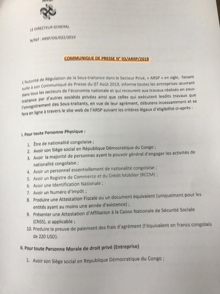 L'Autorité de Régulation de la Sous Traitance dans le Secteur Privé précise par ce communiqué les conditions d'application de la Loi sur la…